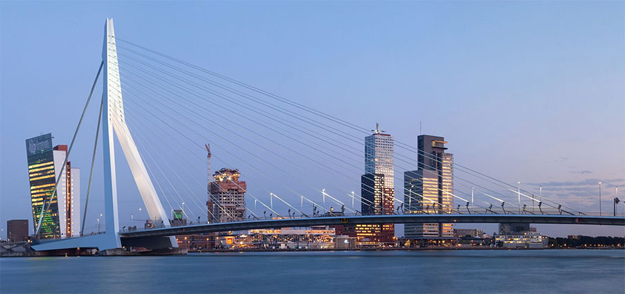 Rotterdam est la deuxième ville des Pays-Bas après Amsterdam. Elle représente le cœur industriel du pays, et jouit d’une position géographique stratégique, à l’embouchure du Rhin et de la Meuse et proche du pas de Calais séparant Manche et Mer du Nord. Elle est ainsi le débouché économique de toute l’Allemagne de l’ouest, la région la plus dynamique d’Europe.